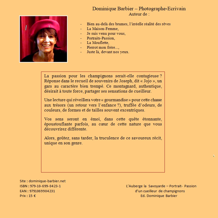 Si vous désirez être informé des publications de l’auteur, ou correspondre avec lui, il vous suffit d’adresser votre courrier à : domibarbier@yahoo.fr